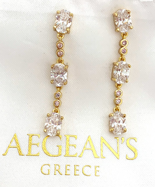ANASTASIA - Luxurious Long Gold-Plated Drop Earrings with Oval and Round Stones